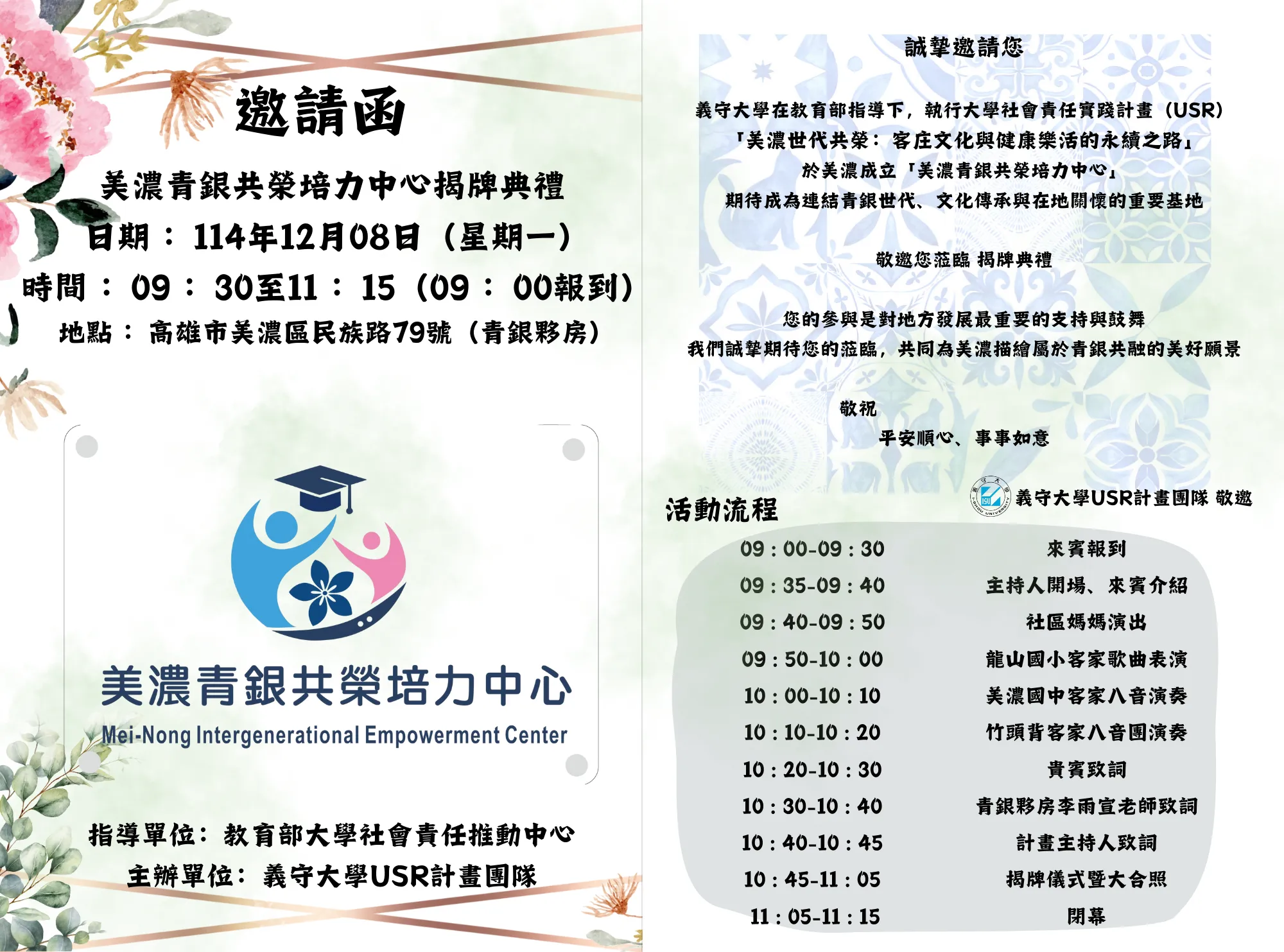 我們誠摯期待您的蒞臨,共同為美濃描繪屬於青銀共融的美好願景。