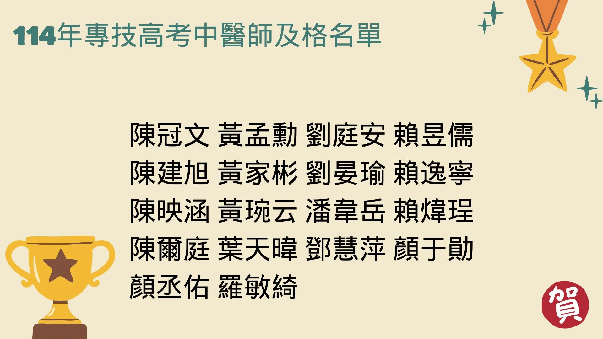 114年度醫學院國考榜單。~~恭喜同學~~114年專技高考營養師114年專技高考護理師(護理系榜單)114年專技高考護理師(護理系榜單)114年專技高考護理師(護理系榜單)114年專技高考護理師(後護系榜單)114年專技高考物理治療師 114年專技高考職能治療師114年專技高考職能治療師114年專技高考中醫師 114年專技高考中醫師114年專技高考醫師