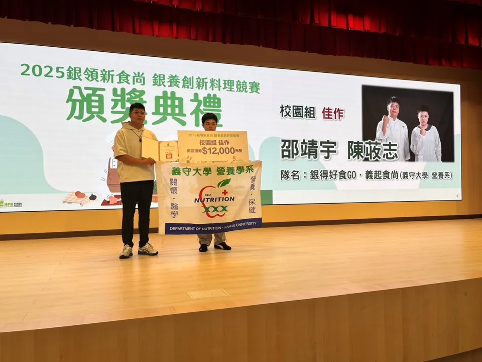 賀! 營養系三年級 邵靖宇、陳荍志,參加國民健康署舉辦的「2025銀領新時尚 銀養創新料理」競賽,